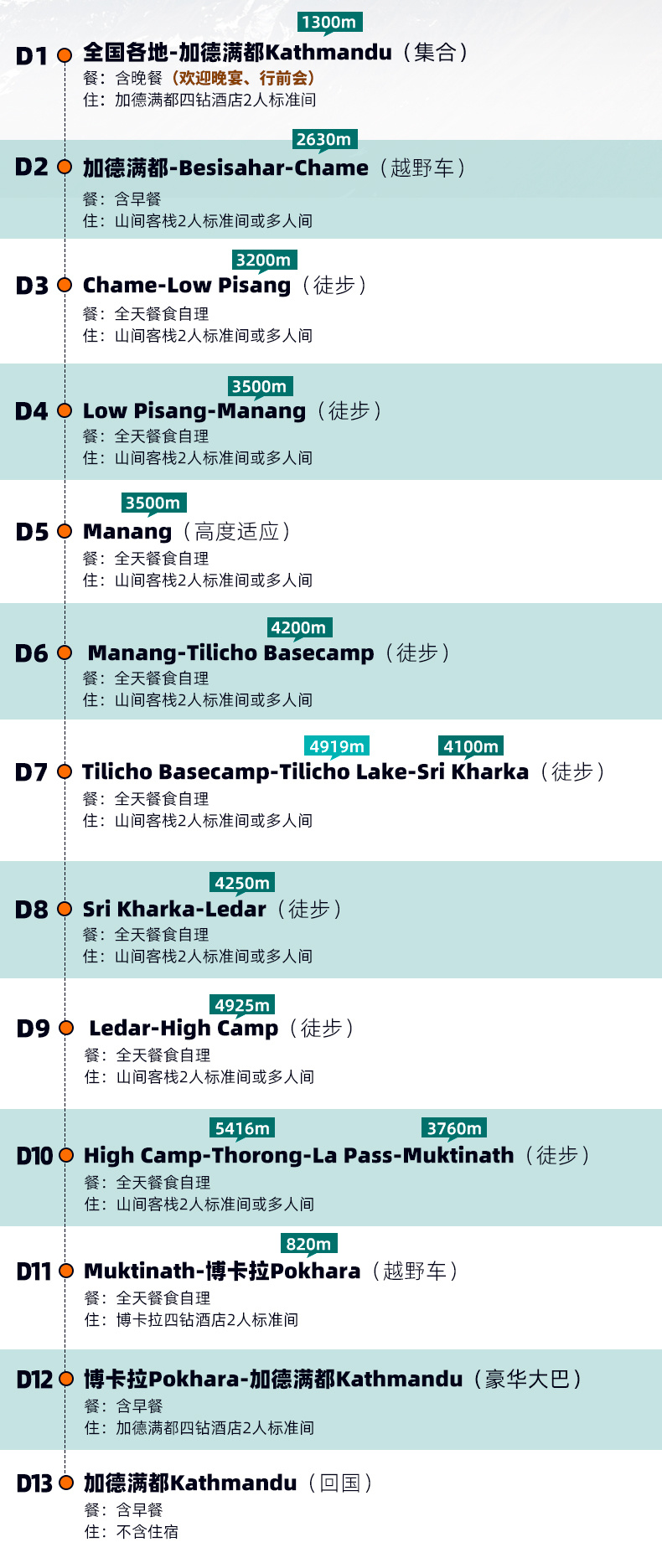 (1)ACT是尼泊尔高海拔最早被开发的线路,Manang海拔3500米,是重要的高海拔适应点;