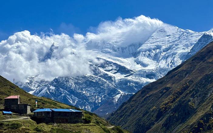 【行程概述】从Manang出发,向西北方向前往Tilicho Basecamp,全程约11公里,耗时7小时。今日将深入Tilicho山谷,地形从荒原逐渐过渡到高山草甸。远处安娜普尔纳峰、提里乔峰等巨峰耸立,周围环绕着高山牧场和溪流,沿途的玛尼堆和经幡增添了宗教氛围。途经高山牧场,偶尔可见牦牛群和牧民的帐篷,体验高原游牧生活。