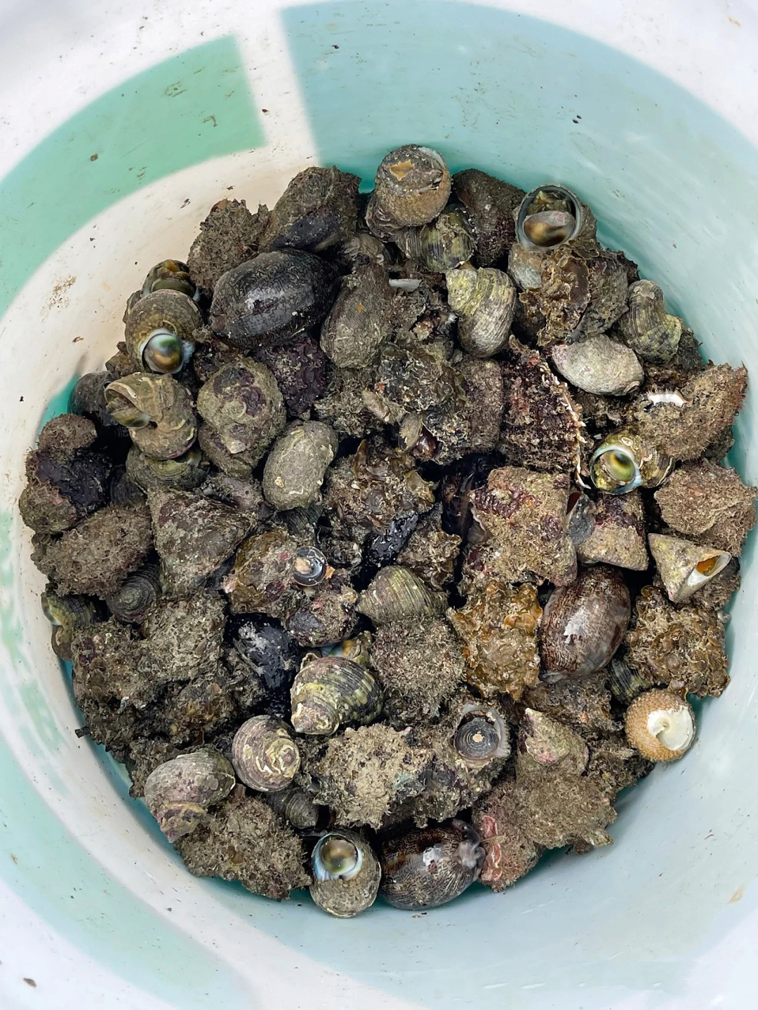 在礁石边就很容易弄到一些石鳖、将军帽、海虹、生蚝、牛角螺、猫眼螺、八爪螺、佛手、沙白、花甲、青口、猪仔螺、苦螺、螃蟹、藤壶等等。
