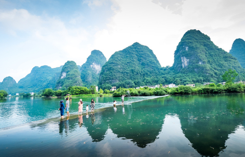 可以在漓江边玩水,拍照,一起来个美美的大合照。